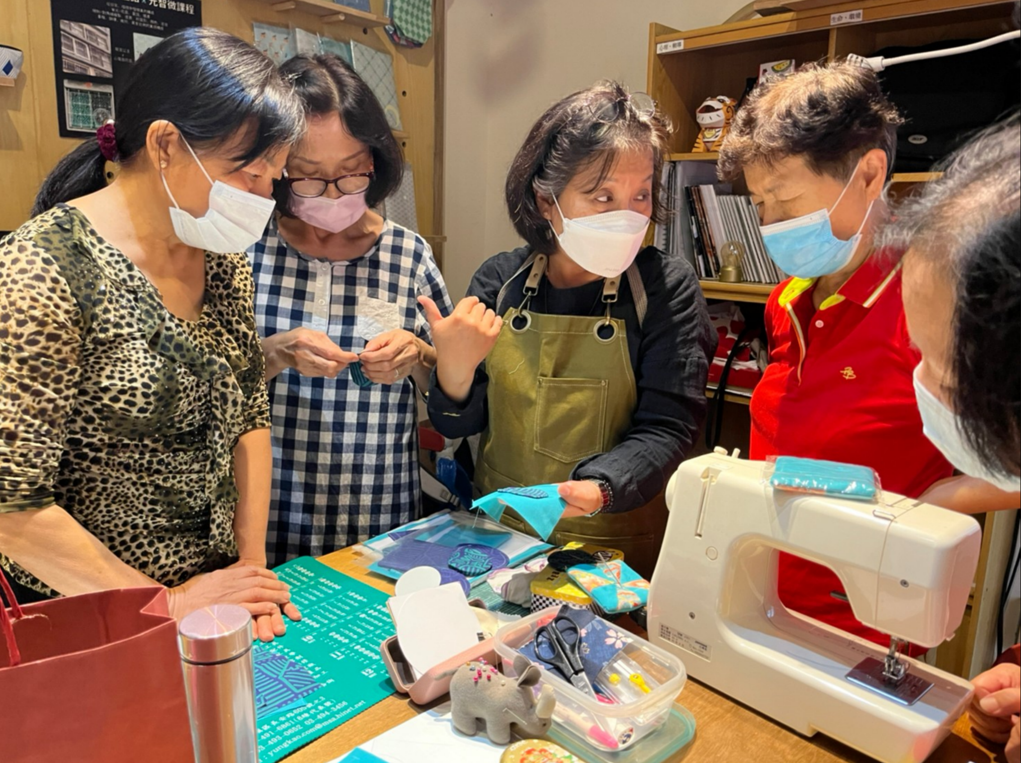 這群初期參與工作坊的居民媽媽,後來都成為技能交換工作坊中最受歡迎的講師,花藝課程的惠芳老師、拼布課程的群芳老師、編織課程的素燕和愛鈴老師,以及纏繞畫與書法專精的秋然老師。她們原本只是素人藝術家,願意把自己所喜愛的手工藝或藝術分享給他人,在這樣輪流當講師的共學機制之下,大家都是平等和自由地學習和分享,學員們開始主動教導和幫助他人,或是提供點心共食,每週五下午的社區工作坊變成她們一週最期待的日子,而元創眷永成為她們可以暫時放下家務,跟朋友聊天、一同做手作、吃點心,並分享各種生活資訊、美感技術的交流平台。