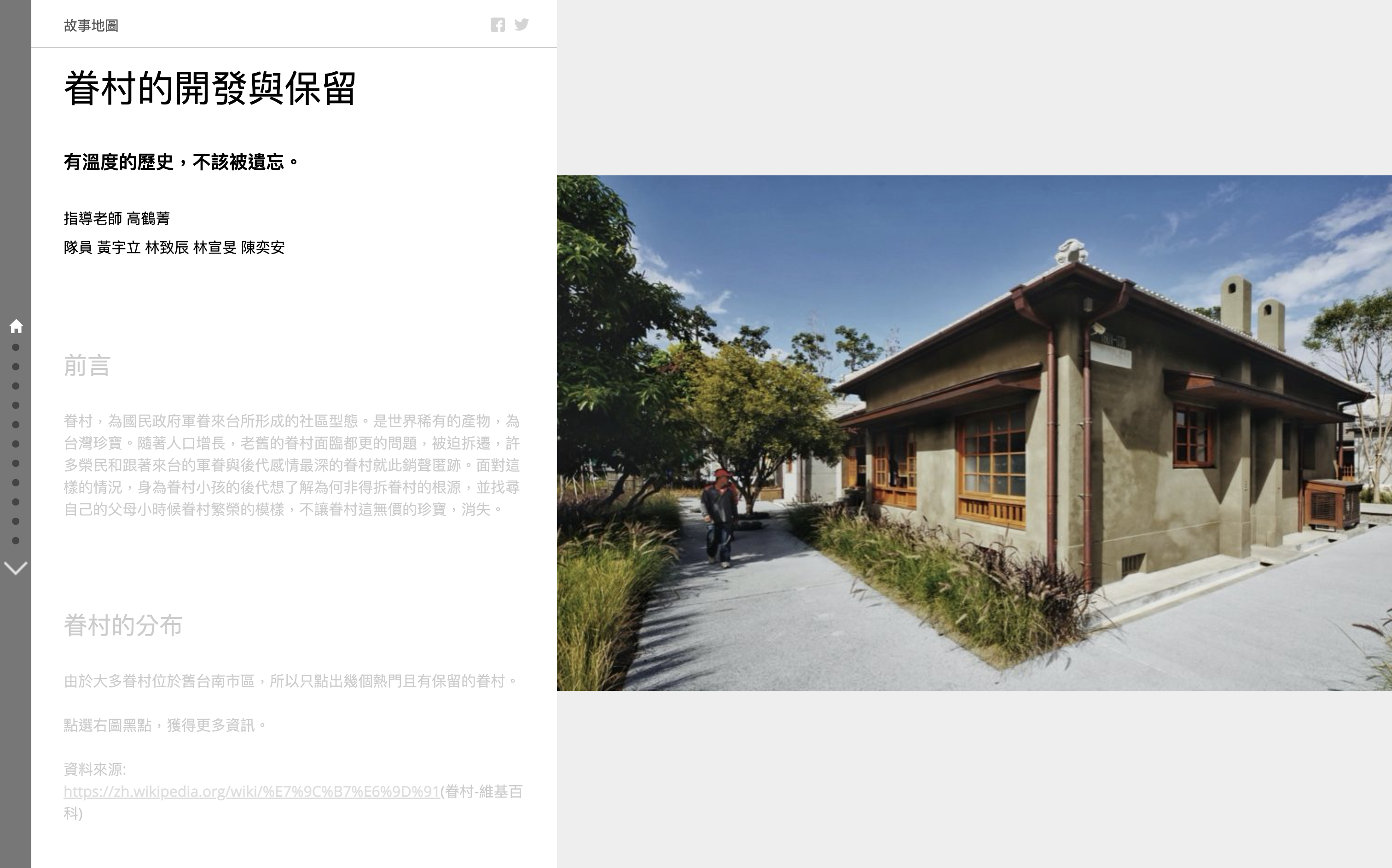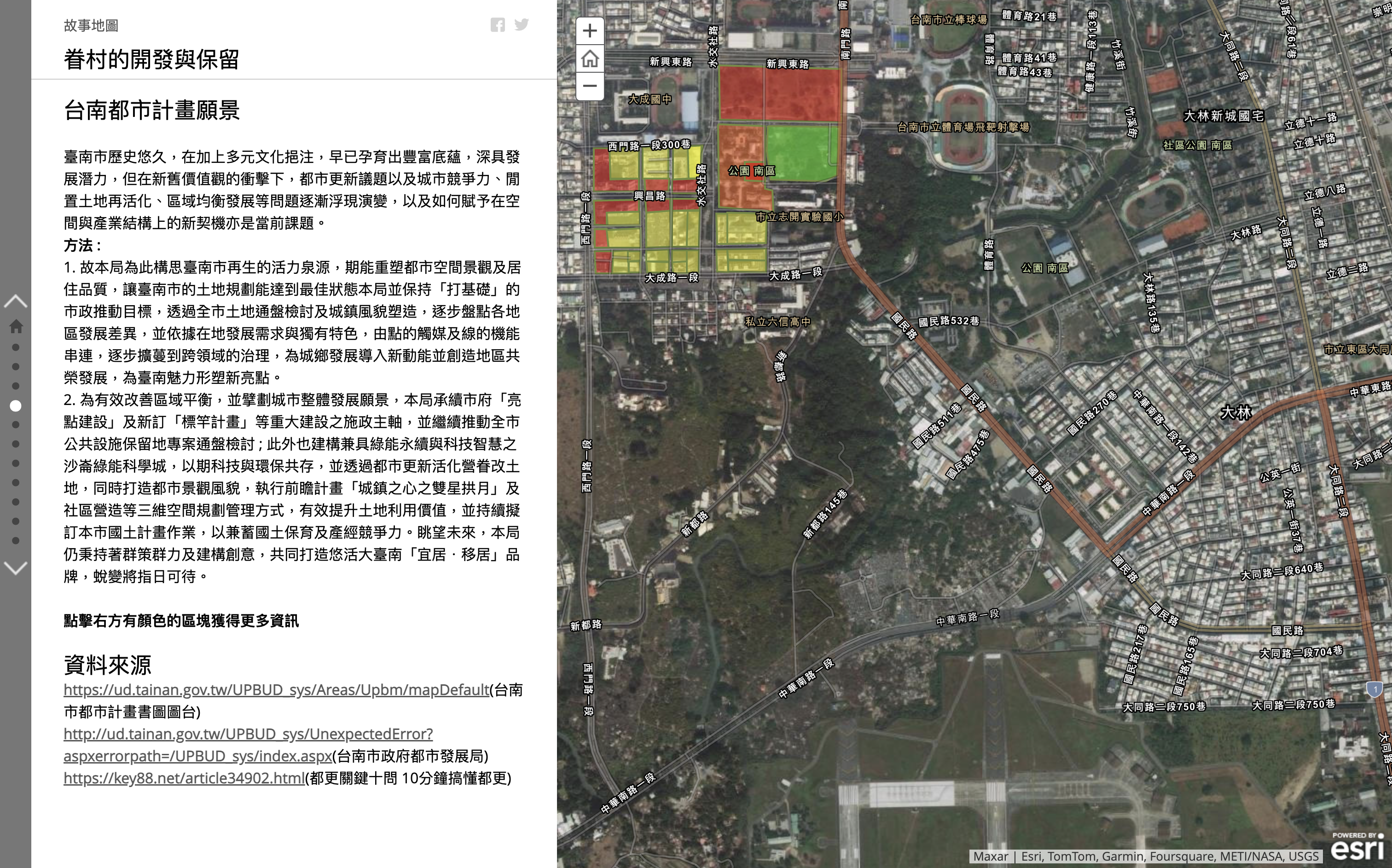 此外,故事地圖Storymaps也是數位時代一個相當好的說故事平台。在2019年7月,Esri發佈了ArcGIS StoryMaps,這是一個全新的應用程式,可通過地圖訴說您的故事。使用者可以直接使用新版ArcGIS StoryMaps,因為它整合了經典故事地圖所有模版的功能,以及現代的設計模式,並且會不斷地更新功能。這平台上有歷屆參加比賽得獎作品的連結(第十屆 全國大專院校暨高中職 StoryMaps 校園競賽),很值得作為地方團隊在說眷村故事的展示新方式。