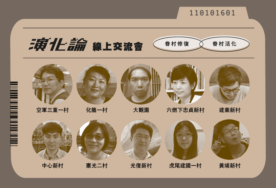 故此次交流會及成果展方向將以「演化」作為核心。討論大面積的眷村因位處不同地域,開始或正開始「演化」出許多不同的樣貌。故希望藉此次交流會及成果展,除了邀請10個不同方向的眷村案例外,也希望探討眷村從有至今的有機變化,以及藉此對外分享眷村的多元立體樣貌。