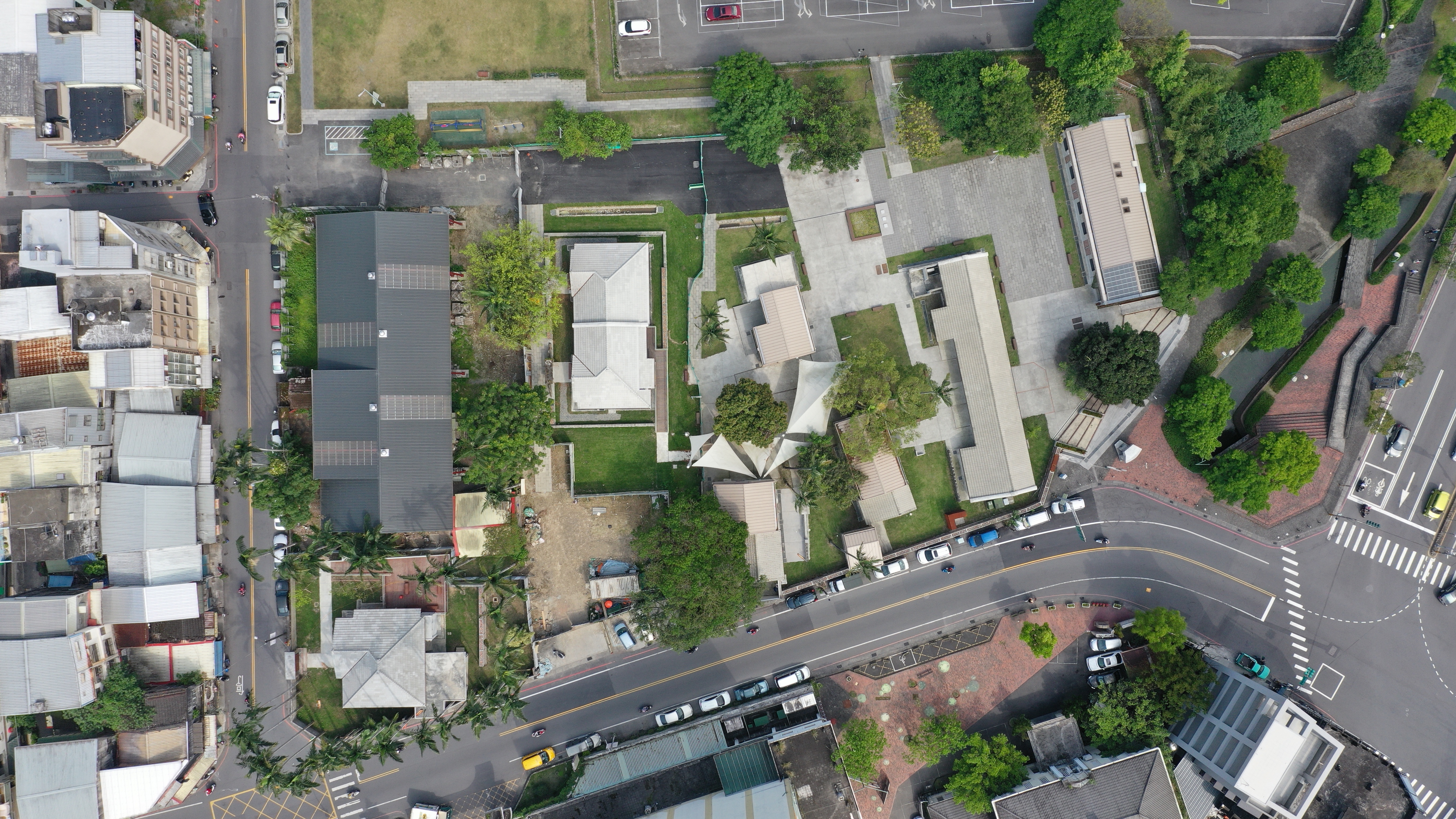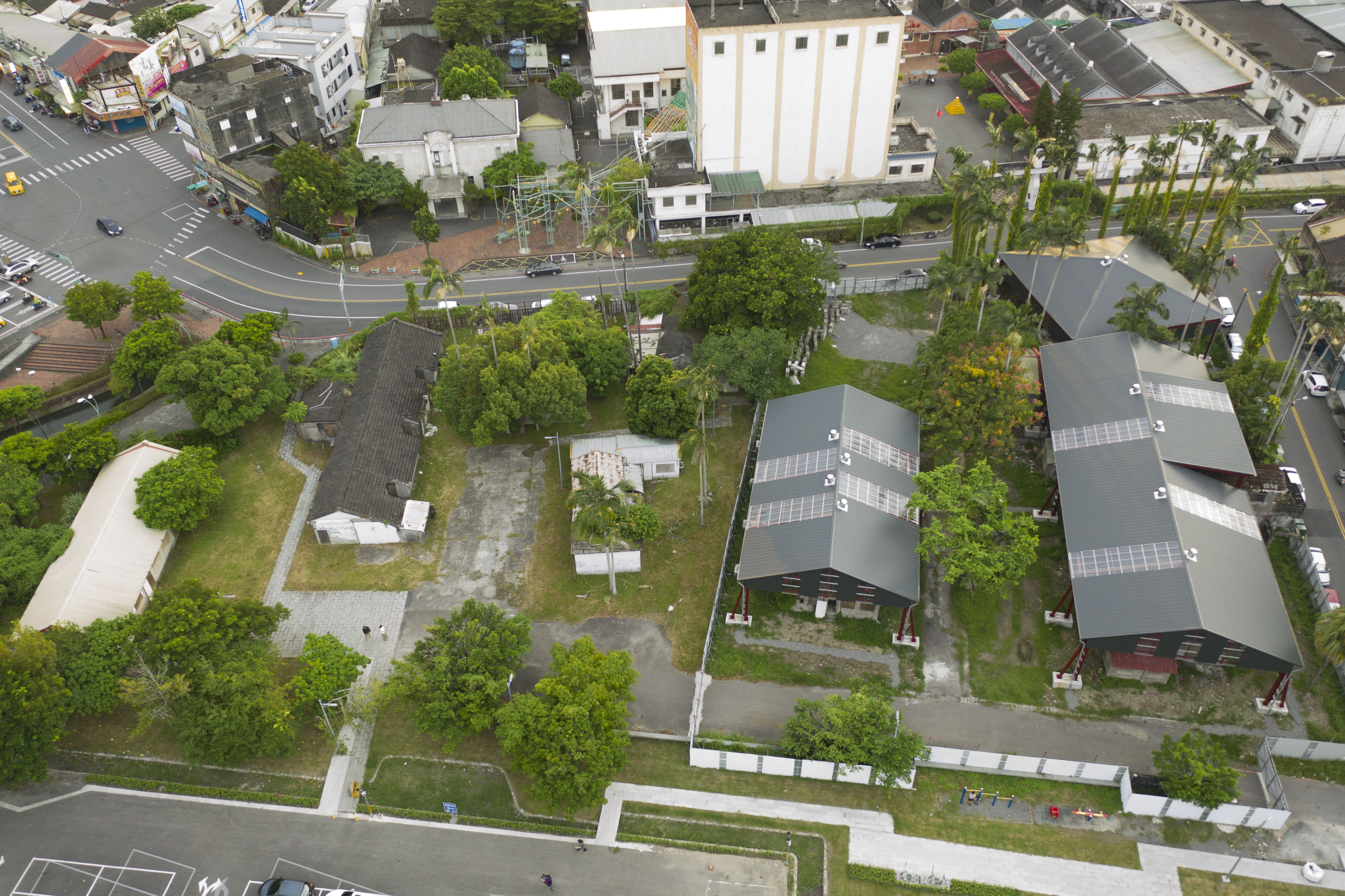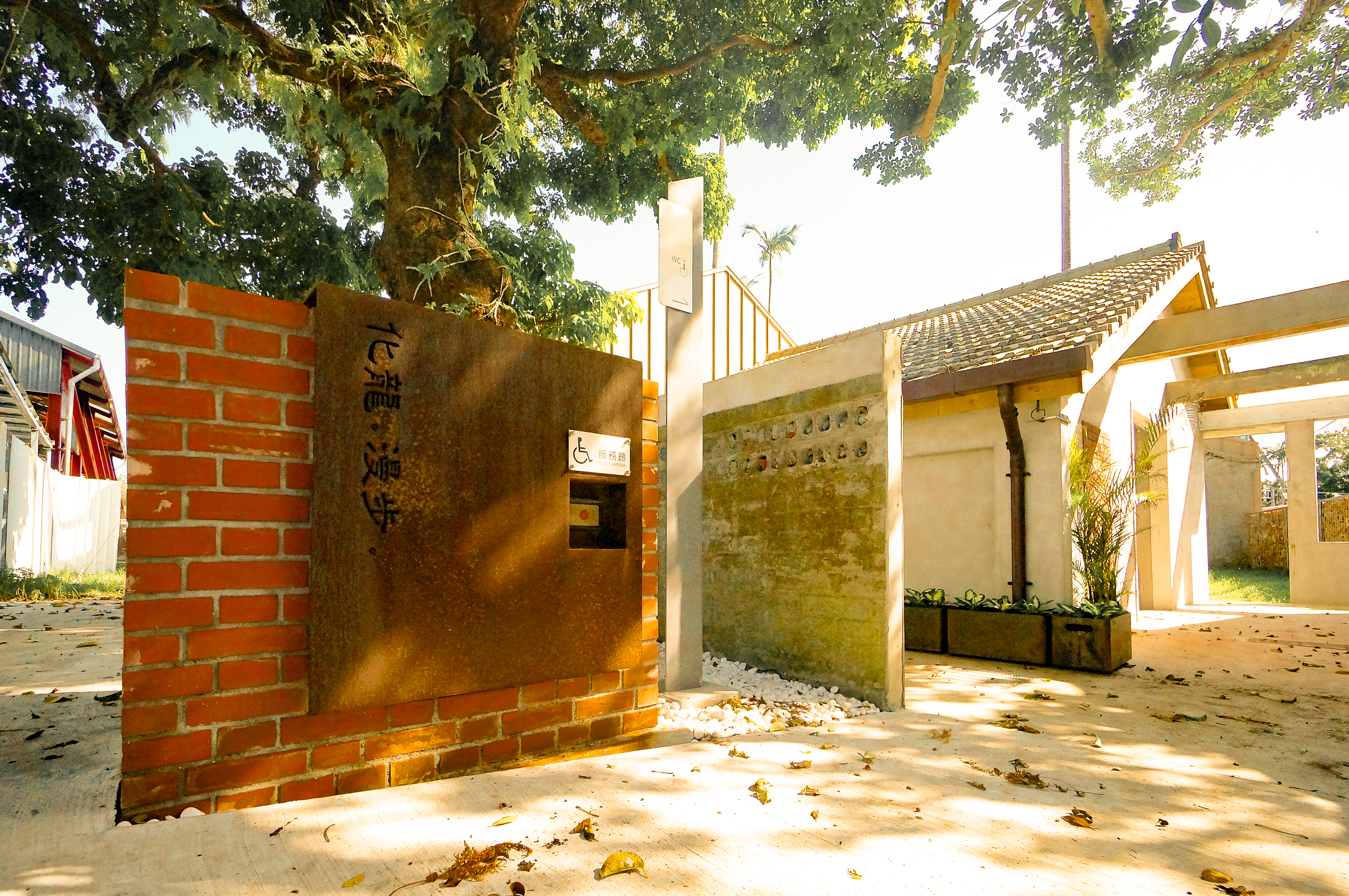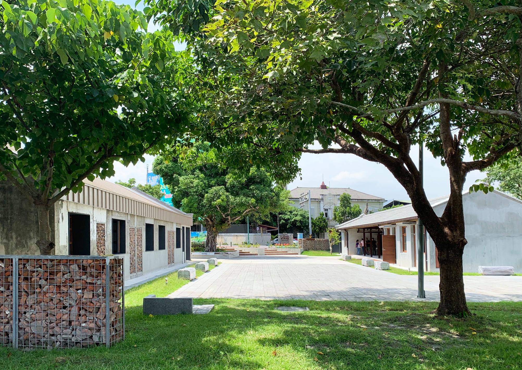 化龍一村園區臨舊城西路的對面是宜蘭酒廠,在戶外公共空間的規劃上也順勢留設了一個廣場,因應這個設定,將原本屬於日式眷舍C棟的增建物規劃成輕食服務區,修復完成後可以發展成一個輕鬆停留的區域,配合5號棟作為園區管理棟,也是園區中主要的公共廁所服務,未來結合廣場、輕食空間,並與酒廠串連之後,就是一個歡迎停留的空間。在與業主的共同討論和想像之下,日式眷舍A棟與日式眷舍B棟之間會是一個有老樹、戲台的場域,作為日後結合日式眷舍空間辦活動的重要空間。整個來說,除了眷舍群本身的建築物修復之外,在外部環境也營造出多個入口與廣場,各自有其不同的使用方式和活動想像。