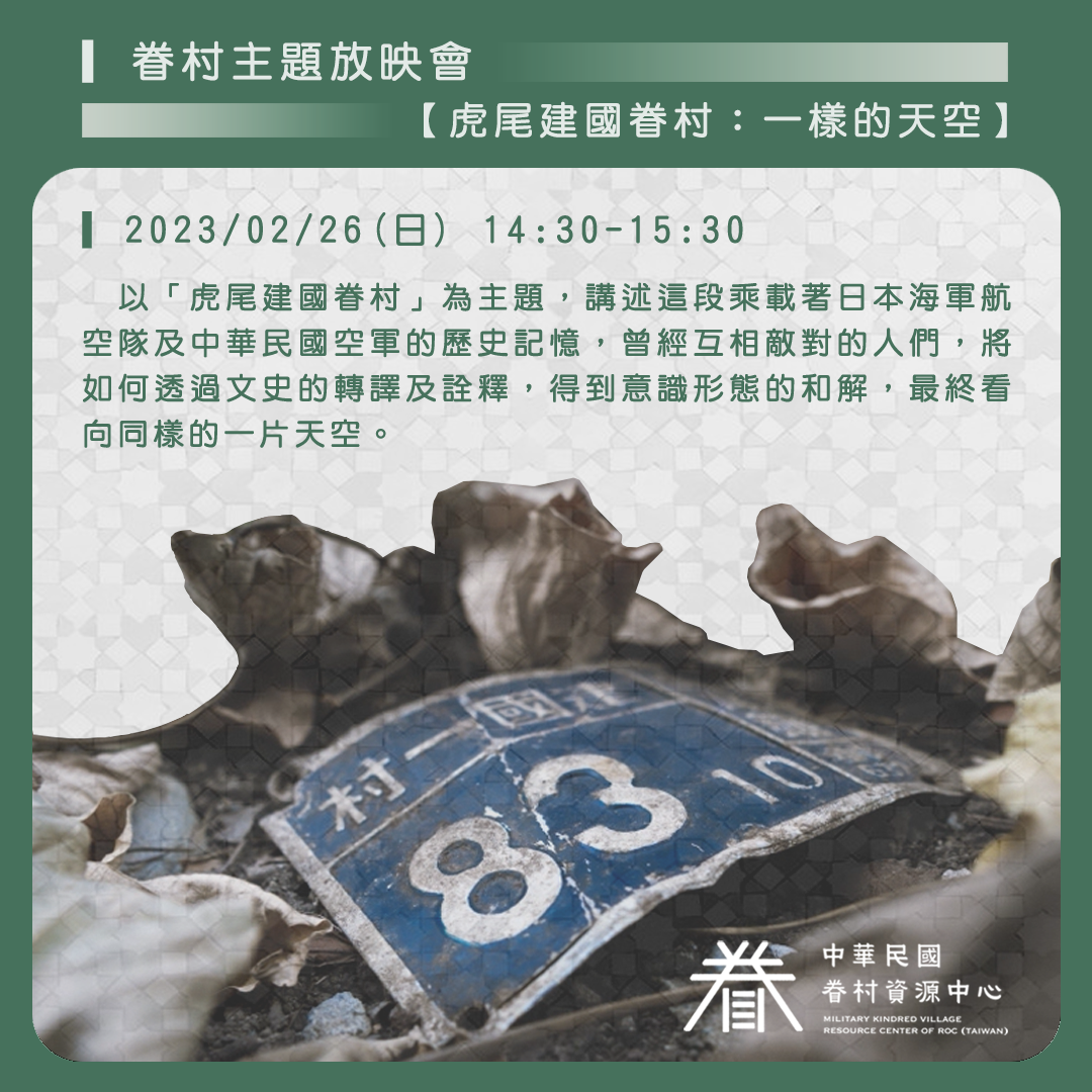 放映會以「虎尾建國眷村」為主題,講述這段乘載著日本海軍航空隊及中華民國空軍的歷史記憶,曾經互相敵對的人們,將如何透過文史的轉譯及詮釋,得到意識形態的和解,最終看向同樣的一片天空。