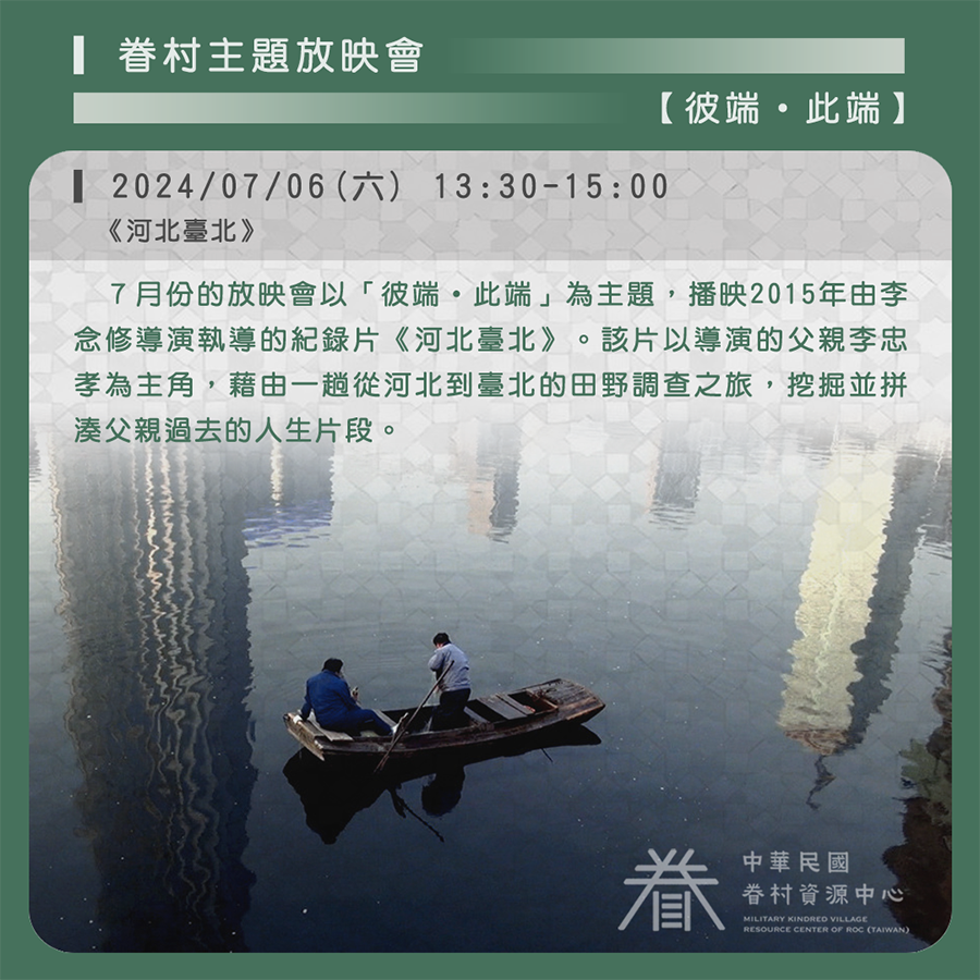 放映會以「彼端・此端」為主題,播映2015年由李念修導演執導的紀錄片《河北臺北》。該片以導演的父親李忠孝為主角,藉由一趟從河北到臺北的田野調查之旅,挖掘並拼湊父親過去的人生片段。